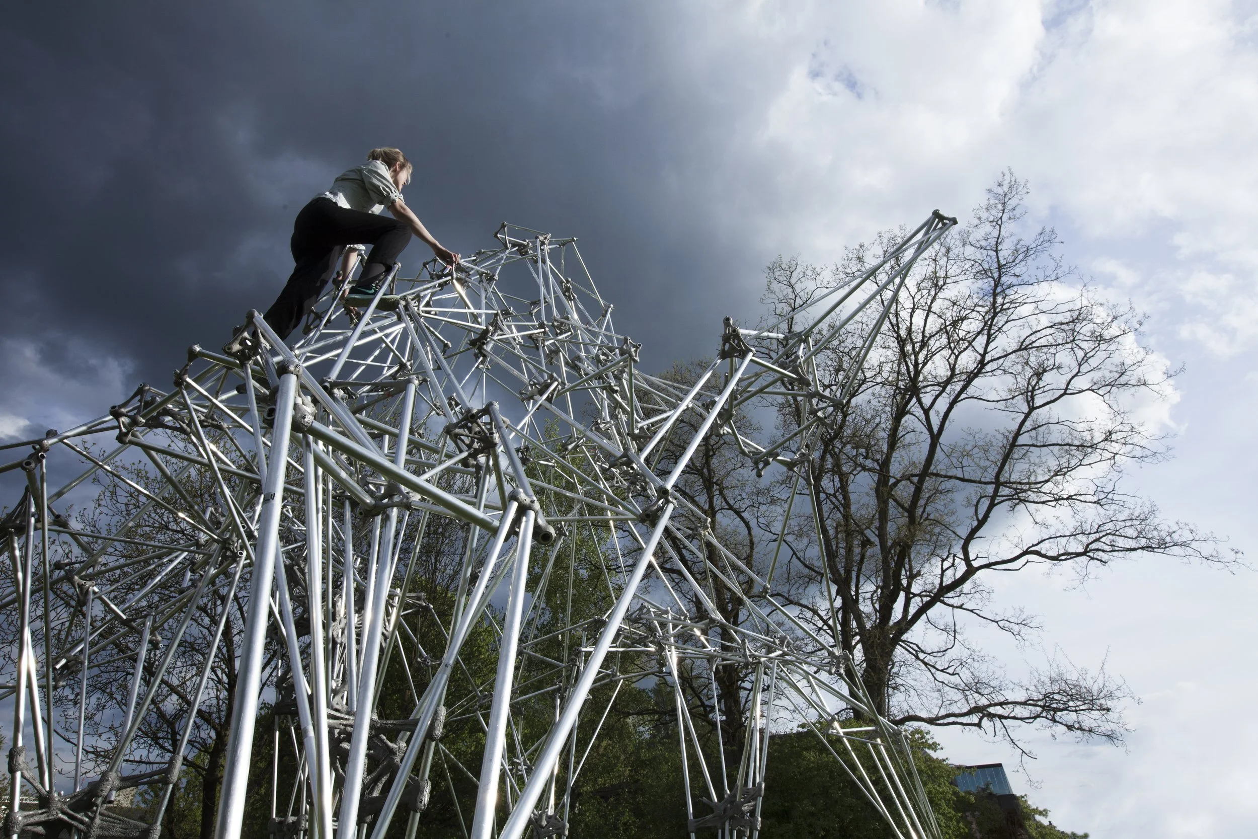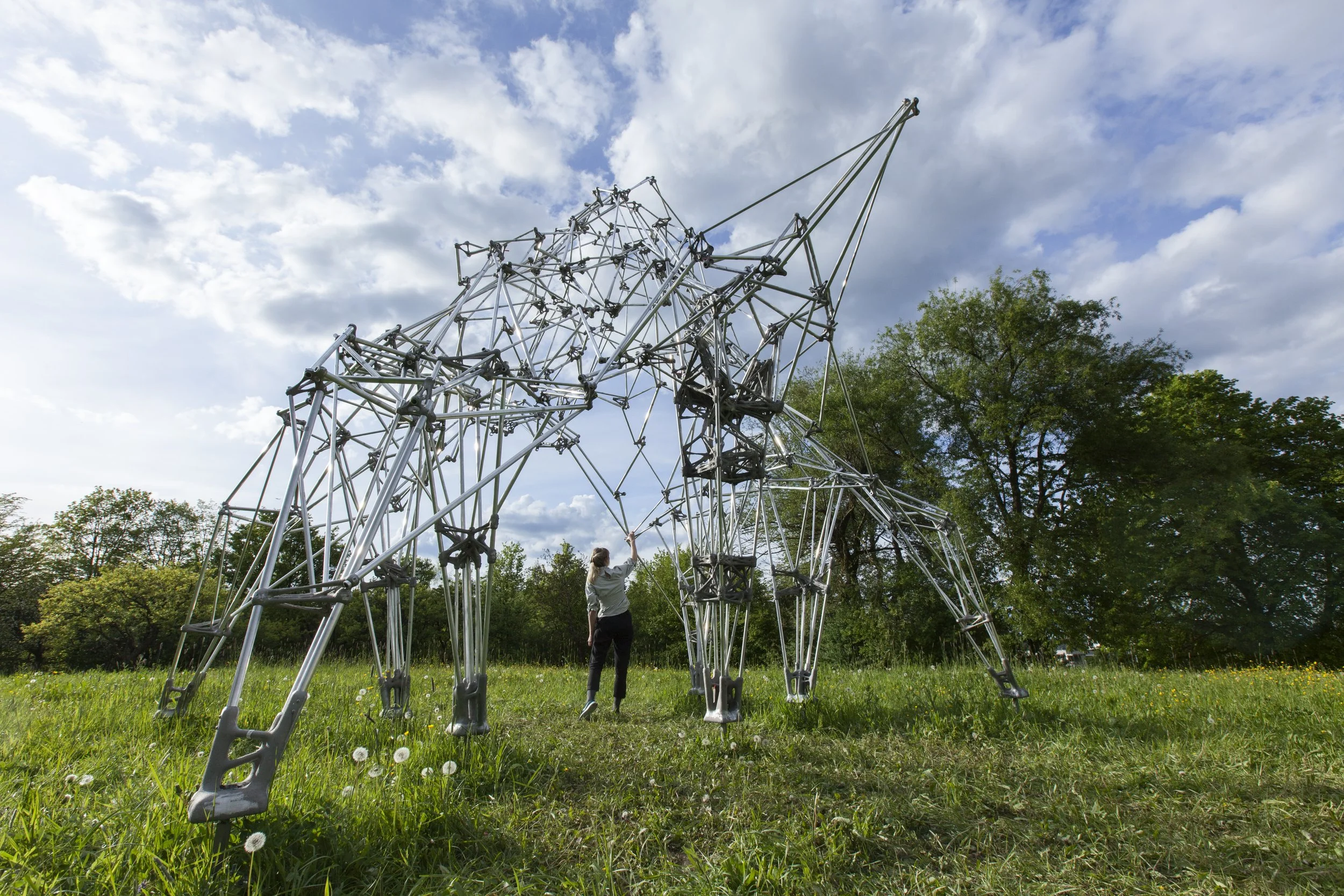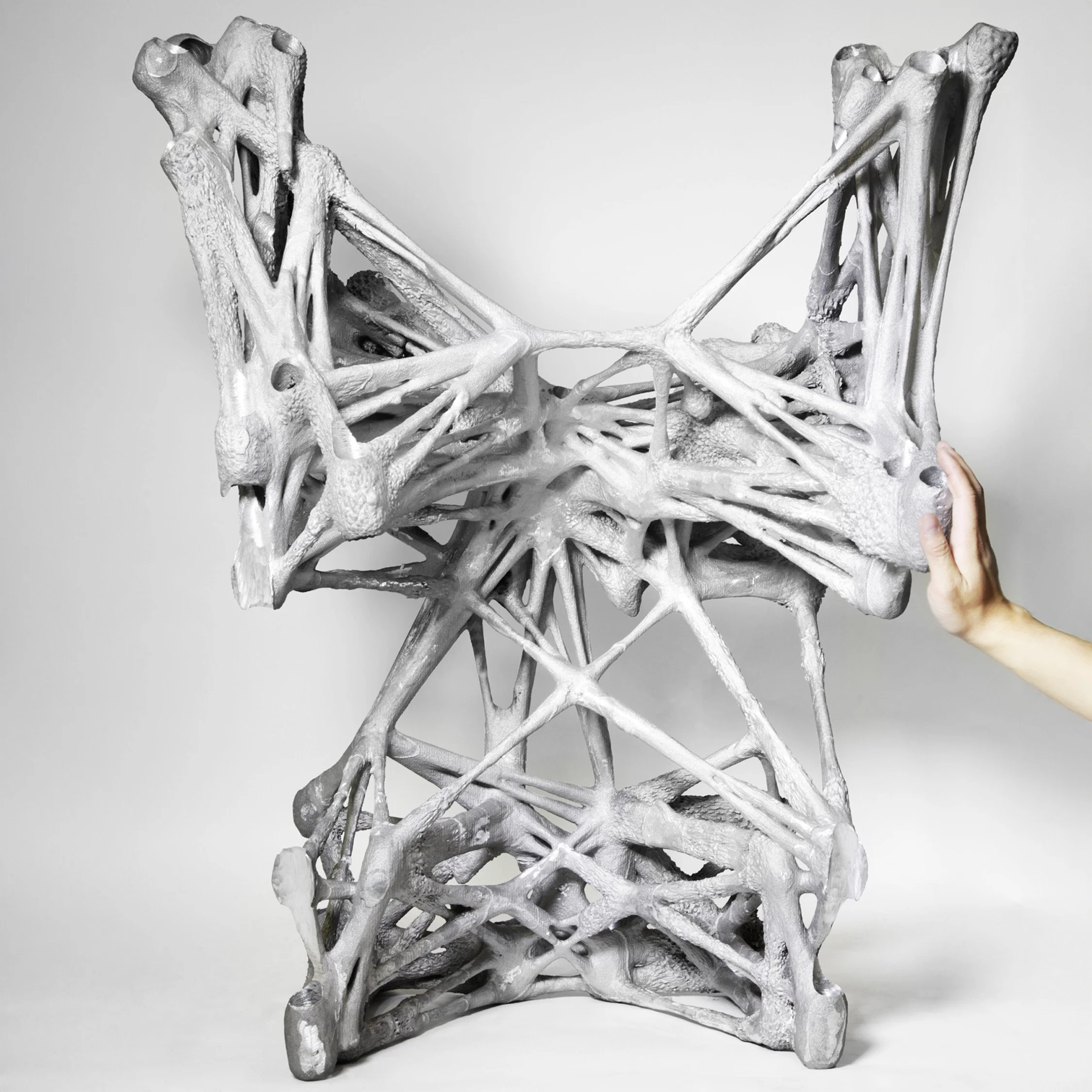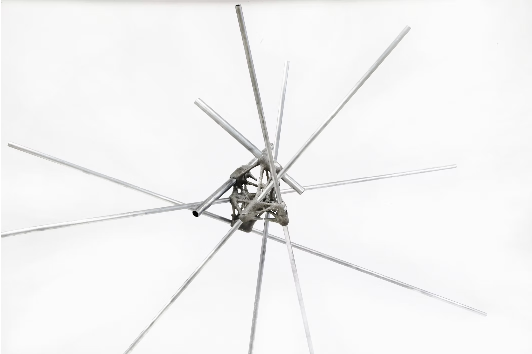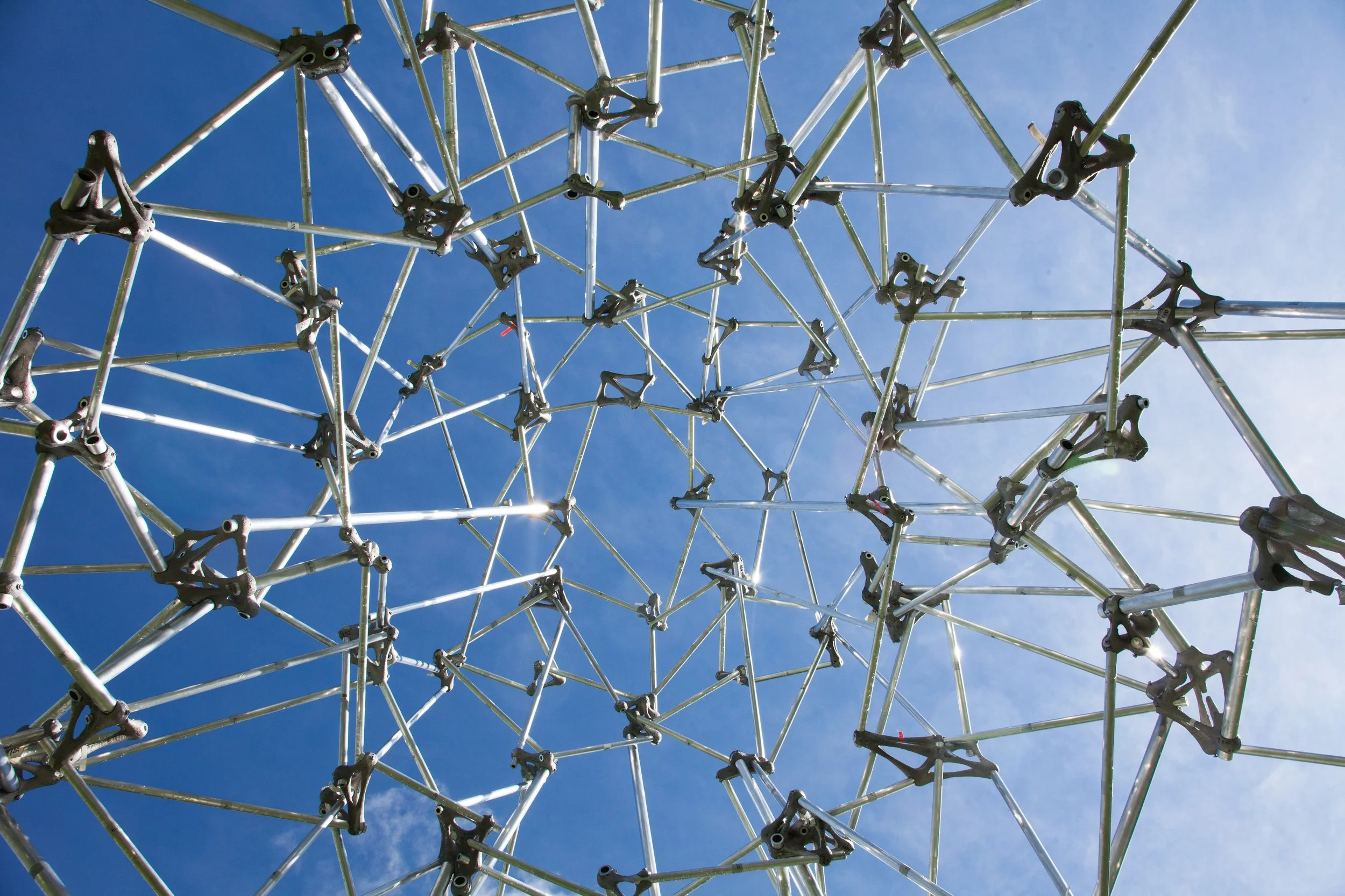 This project revisits traditional metal-casting techniques through the lens of digital fabrication, exploring how aluminum can be cast into highly complex geometries using 3D-printed sand molds. Custom molds are produced with Binder Jetting technology, enabling precise, detailed forms that would be prohibitively labor-intensive to fabricate by conventional means. The resulting cast components serve as structural joints that connect off-the-shelf aluminum rods into a three-dimensional space frame.