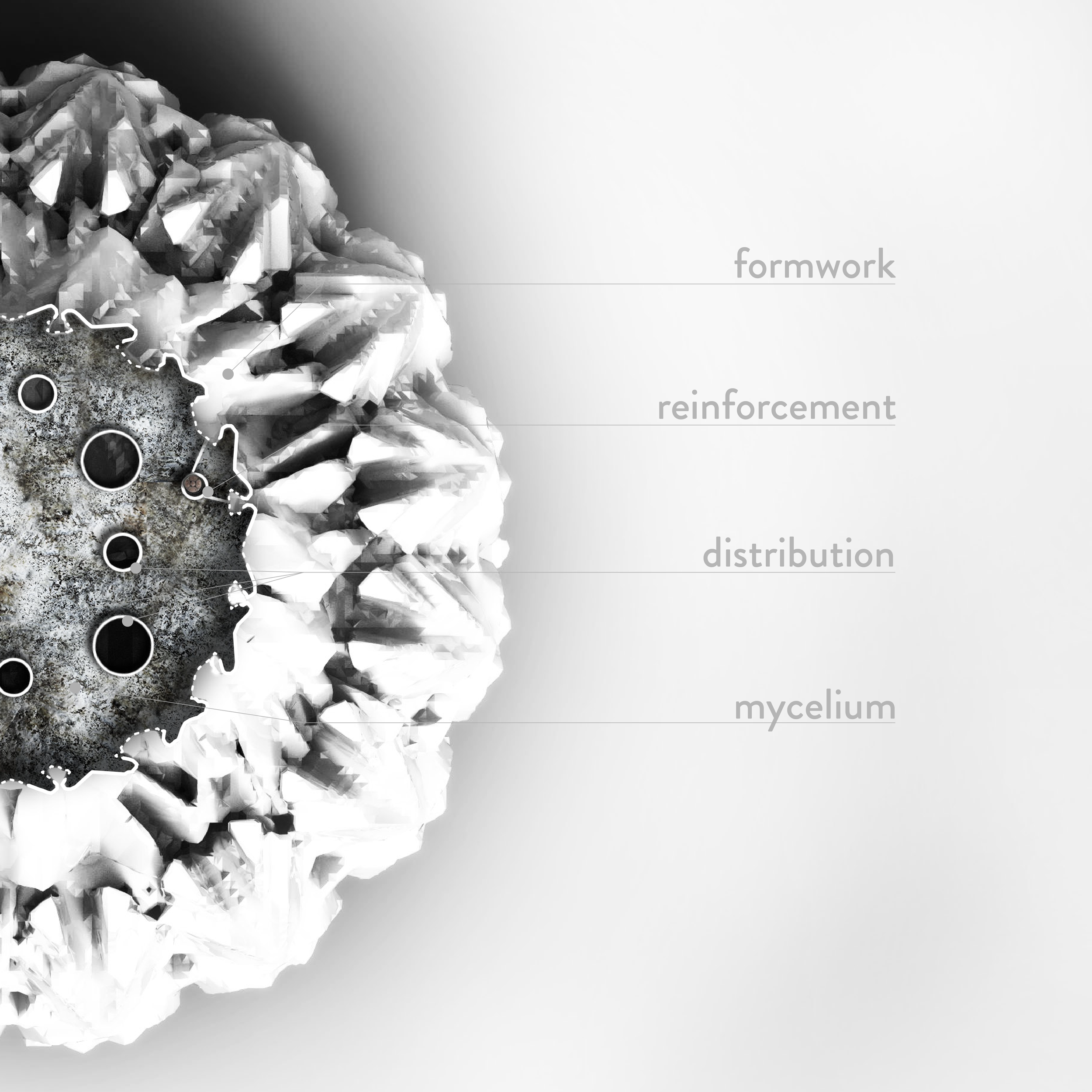 Mycelium-bound composites (MBC) represent a rapidly emerging class of bio-based materials in architecture. Formed through the growth of fungal mycelium within an organic substrate, MBCs consolidate into lightweight, biodegradable and fire-resistant structural composites. Their fabrication relies on biological self-organization rather than energy-intensive industrial processes, offering a paradigm shift toward regenerative building materials. This research explores how architectural form, growth conditions and fabrication logics can be intentionally co-designed to enable new applications for MBCs.